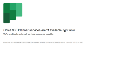 Are we the only ones having issues with Planner? I has just said "This service is unavailable" all day.