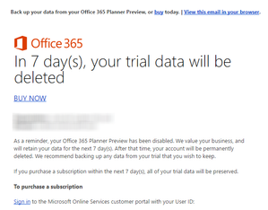 Planner Preview nag email has turned into a data loss warning
