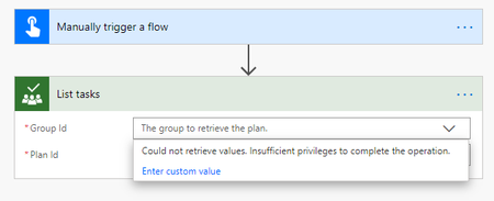 {"@odata.etag": "xxxxxx"","createdDateTime": "2019-06-04T16:19:22.4969055Z","owner": "14a58c41-3979-4057-babd-cc3f69b01d8b","title": "Ready2019",And 14a58c41-3979-4057-babd-cc3f69b01d8b is the GroupIdI hope that helps. Requesting in the UserVoice for Power Automate may get the options fixed in Flow - but hopefully this workaround may help for now.- Ethan_ZhangAug 21, 2020Copper Contributor