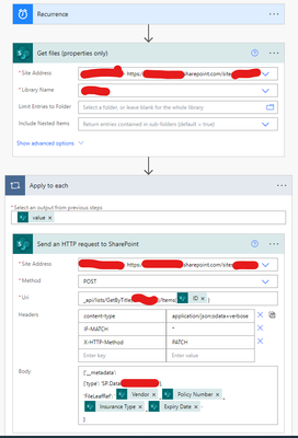 .... 'FileLeafRef': items('Apply_to_each')?['VendorColumn']?['VendorColumnValue'] ....