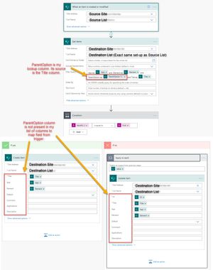 I updated my Get Items filter query as you mentioned and there appears to be no difference. Both queries still return "Successful" runs, though my lookup column Parent Option is still not present in my Create Item and Update Item columns, and therefore does not include the Parent Option value for an item in my destination list.