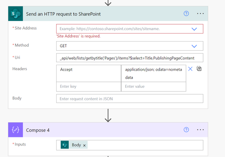 Hi All, I would like to iterate through pages in SharePoint and get/extract any emails or urls and export it to an excel format. I'm using the "Send an HTTP request to SharePoint" and calling thi...