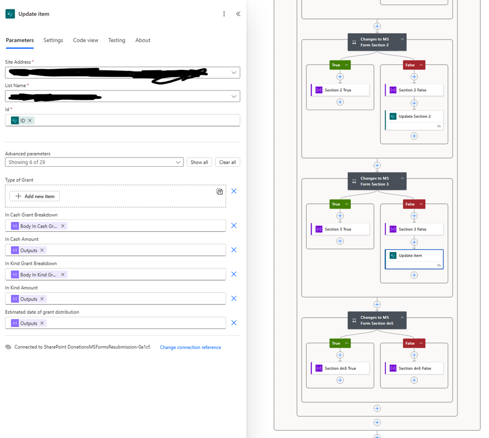 This flow occurs quite fast without the "Type of Grant" field. However, when I include an array of multiple-choice selections under the "Type of Grant" field, the flow takes forever to run.