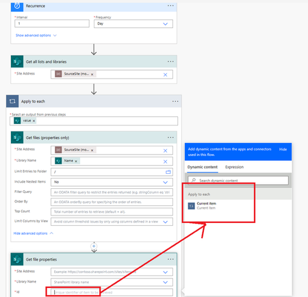 I have created a scheduled flow which get all lists and libraries from a site >> then loop through the files/folders inside the root folder of each list/library and then move them to a destination s...