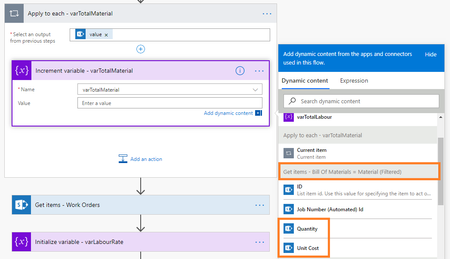Hello All, Can anyone tell me why my "Get items" columns are not available for use in a Expression within a "Increment variable" action? Image 1 - pre-Expression note columns "Quantity" and "...