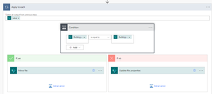 The flow gets all file properties for those files in the source docs folder, then for each it moves it to the folder matching the building name attribute.