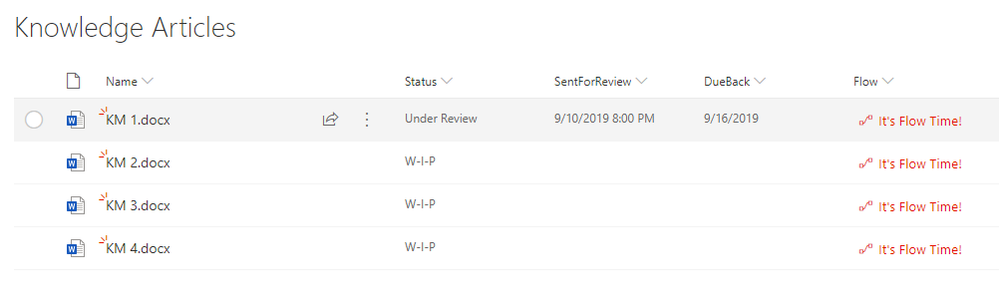 - Add "Status" (Choice), "Sent For Review" (Date and time), "Due Back" (Date) and Flow (String) columns to the Document Library.