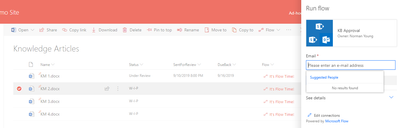I'm hoping to get to a finished state where the user (KM Manager) only has to click Send for Review, enter the email of the reviewer, and the Due Back date.