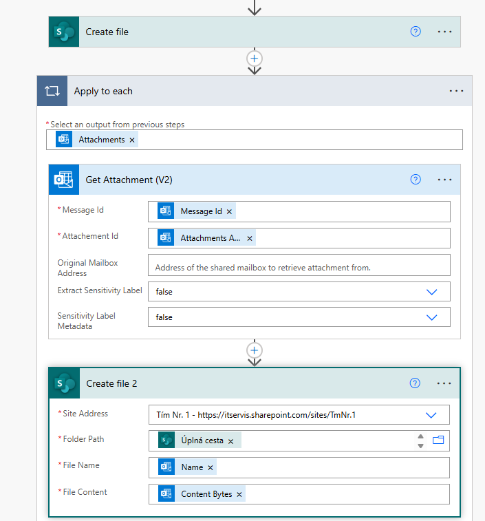 Before the step "Create file" a added step "Get Attachement (V2)" - see pic.