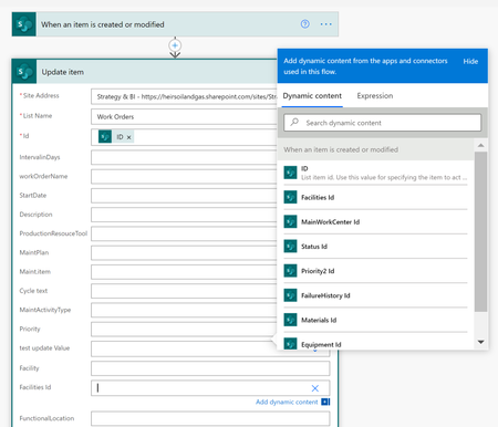 I want to update a lookup column with values from a text column using flow so populate facilities id with the values from facility