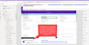 So if the toggle is off it will display the name from the lblManager field, i.e the current manager, otherwise it will display the name selected from the dropdown.