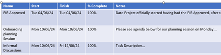 The picture attached shows how to add Text1 to the existing task table in the graphical report. But pls note that transferring task notes to the Text1 field for multi-line display would be feasible if you want to do this just for a few tasks or for the project summary task only. Otherwise, creating formulas and updating the text would be a tedious job to do. I would rather insert a separate text box and fill it with information.