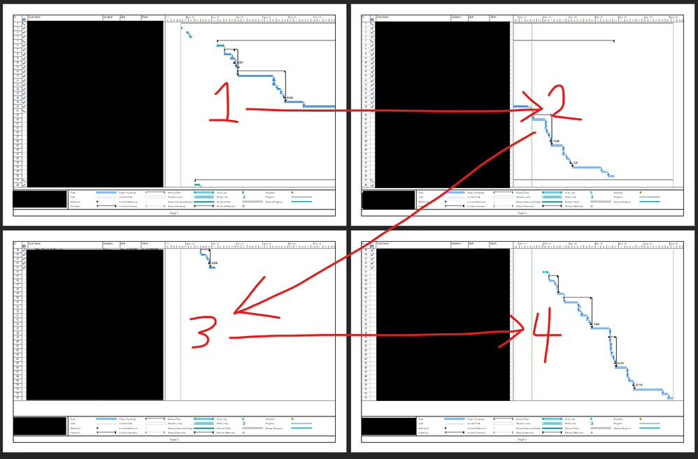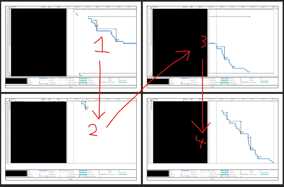 Hello, I'm looking to see if someone can help me find how to change the order that pages are printed in Project. Personally, I know this doesn't matter because you can just line them up as you like, but my job has me make PDFs of them as well and my boss would prefer the order to be different, so if possible I'd rather find a way to make it do it the way he'd like automatically than me re-arranging the PDF pages and editing the page numbers.