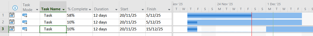 My task was Start 20 Nov 2025 and Finish 5 Dec 2025