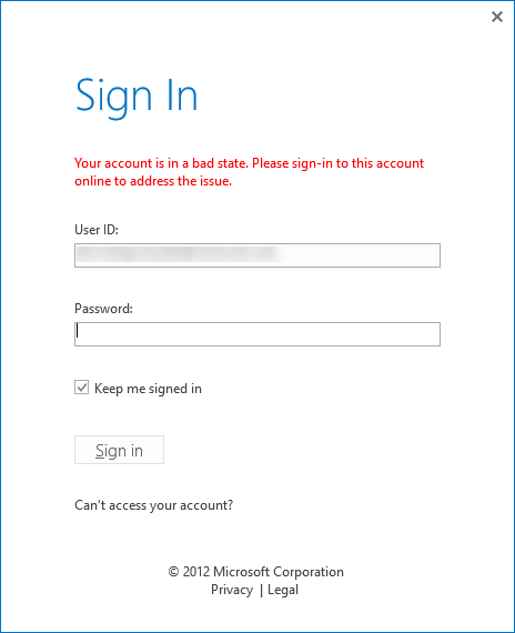 Designer: Your account is in bad state. Please sign-in to this account online to address the issue.