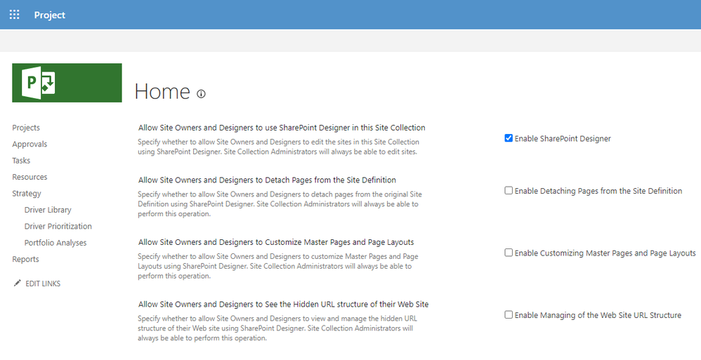 I am trying to access a PWA using Sharepoint Designer (SPD) to configure a project workflow. This is a new Site Collection on a new Tenant. I am on the Site Collection administrator list and the Site Collection has the option to allow SPD connection enabled. The user has MFA enabled and I have generated an App Password for SPD. By following this procedure, I can connect to an old Site Collection (on an old Tenant). Consequently, I understand that SPD is installed correctly. However, I am unable to connect to the new Site Collection using SPD. I have also followed some advice on deleting cache and passwords. However, it still gives me the same error, it won't allow me to connect to PWA from SPD.