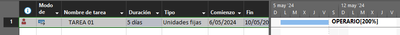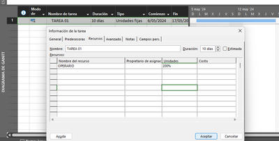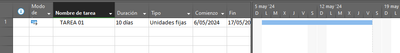 The Fixed Units (Unidades fijas) task type is used to maintain the number of Resource Units assigned to the task when the user changes the Duration of the task or the amount of Work of the resources in the task.