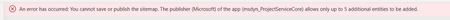 Error - you can`t save the sitemap, the publisher allows only up to 5 additional entities