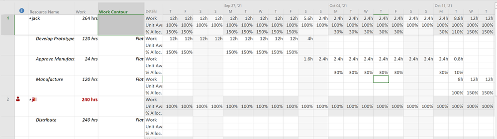 This was helpful John-project. I was able to check, and found the work contour as mostly 'Flat'. A bigger concern for me on closer evaluation is that for the same % units assigned to a resource for separate tasks, I see different hours in the work column. My current plan is ~2500 lines so I'm curious if there is a way to fix this? For example, if I mention 50% as the units for a task that lasts 10 edays, I want it to show 120 hours for all tasks which say 10 edays with 50% for one resource. Currently, this is different for some reason. Screenshot attached.