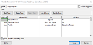 I have a view set up with the Incomplete Tasks filter applied. I also want to then highlight slipping tasks by applying the Slipping highlight option. It appears however that project doesn't let yo...