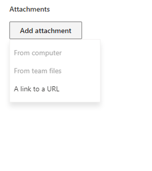 You need to add team members to a Group for your project. That action will activate the other two items on the Add Attachment menu. Also, I am not sure WHY Microsoft engineered the feature to work this way, but that is just how it works. Hope this helps.
