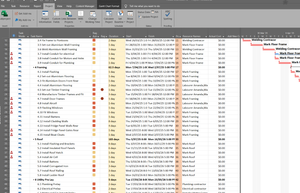 I also note you have several instances of resource overallocation as denoted by the red person in the Indicators field. That means one or more resources assigned on those tasks is exceeding their Max Unit level for a given time period. For example, a given resource is assigned to two (or more) concurrent or overlapping tasks at greater than 100%. For example, "Mark Floor Frame" is assigned at 100% to task 15 and 16 which are concurrent. Either the resources should be assigned at 50% to each of those tasks, or perhaps it would make more sense to combine those two tasks into a single "Install electrical conduit".