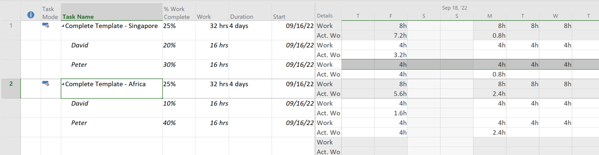 I have 2 resources, who needs to complete certain set of tasks but both the resources are assigned to two different regions (Singapore, Africa) to complete the task.