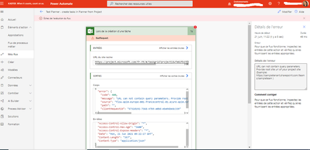 I have an issue concerning this flow I am trying to build, the purpose is to transfer tasks from a project in MS project online to planner: the URL adress of my project published in a sharepoint list...