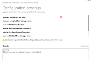Hi, I'm trying to install and configure workflow manager in sharepoint with pwa 2019 on-prem, however am getting the following error Object reference not set to an instance of an object (see the ...