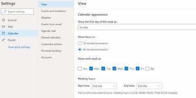 • https://docs.microsoft.com/en-us/viva/insights/personal/teams/viva-teams-app-settings - The system uses the defaults set by the Administrator for the Time zone, Working days and