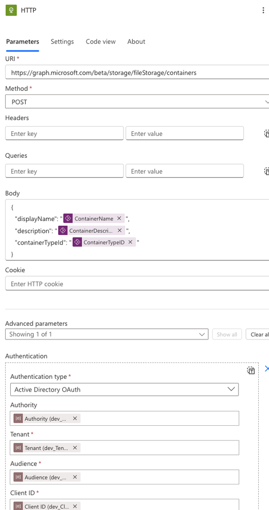 and we created in PowerAutomate HTTP invoke action preauthorized and create certificate to App to set the action and action setup up successfully but in power automate when we create container we get error access denied  so plz advice