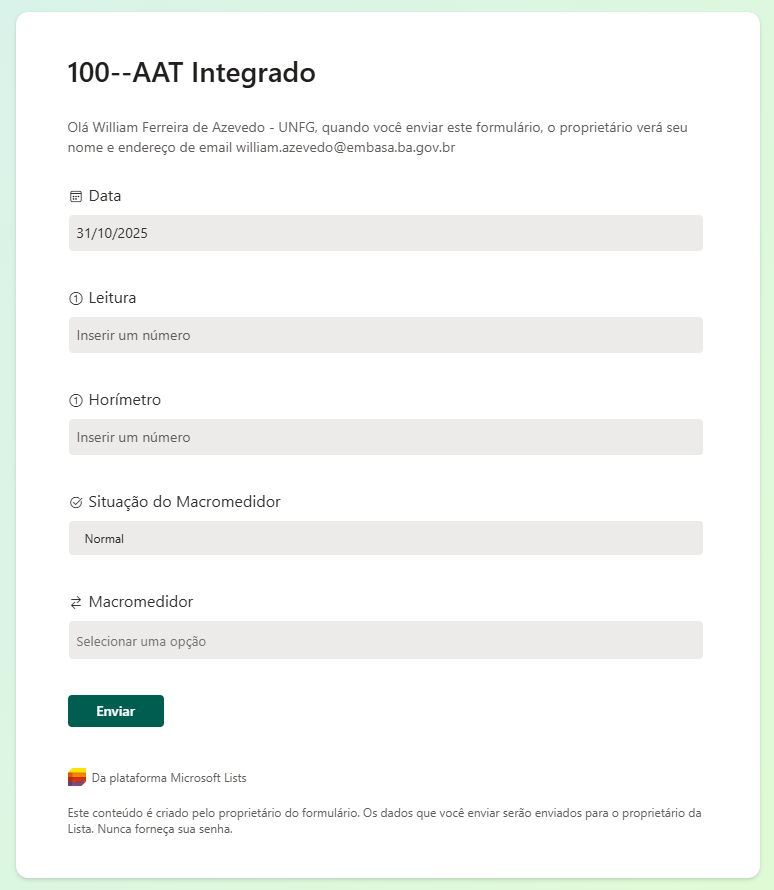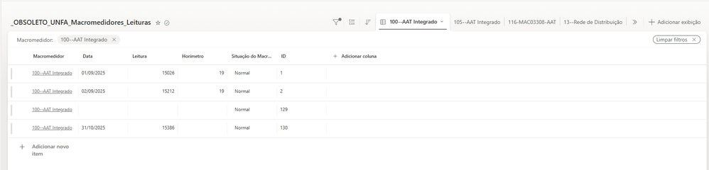 It brings me one more thing to think about: dozens of people in dozens of places will insert the readings in the list and since there are hundreds of equipments, there are thousands of chances of making a mistake while doing it. To avoid this, the first measure that came to mind was making a form to each view, which I tried and worked nicely (although it makes no difference, it works as a guide to the inserter):