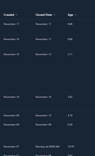 - wschaeferNov 30, 2023Copper ContributorRob ur the **bleep**ing man i got it working, now just some follow up questions, So it doesnt count 0 because you cant divide by 0 obviously so what about the ones that would be under a day those will come up just as 1 correct? Also if i took out tickets that would Raise my average by a lot like my boss has some in there that took months to complete if i took those out and reran it it should show up the new one correct IE the average should drop is that thinking correct? and again i cant thank you enough