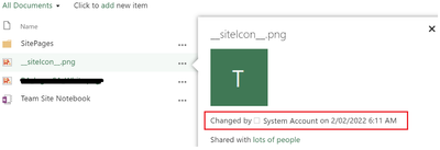 I also noticed that the main site logo was modified this morning at 6am by the "System Account", which also I don't know that much about: