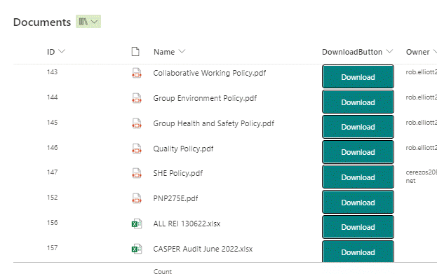 This is the SharePoint list: