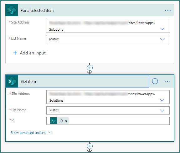 Then in your flow the trigger is a SharePoint For a selected item. The first action is a SharePoint Get item to get the details of the item where you clicked the button: