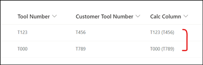 I have: =[Tool Number]&"([Customer Tool Number])". I would like the second value to appear in brackets as the example below: