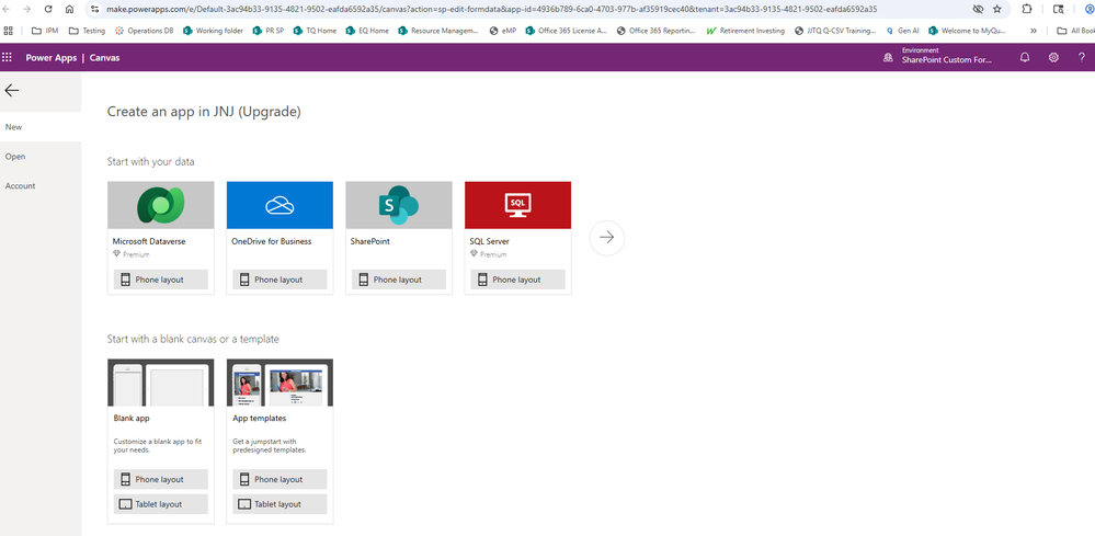 I manage multiple custom SharePoint forms with Power Apps, there is one form that when I try to edit it takes me to create an app page instead of the form editor.