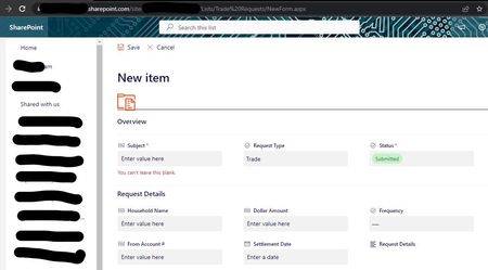 https://<tenantName>.sharepoint.com/sites/<siteName>/Lists/Trade Requests/AllItems.aspxAllItems is the SharePoint default view created when you create a new list. It should be available for you unless someone else deleted it.