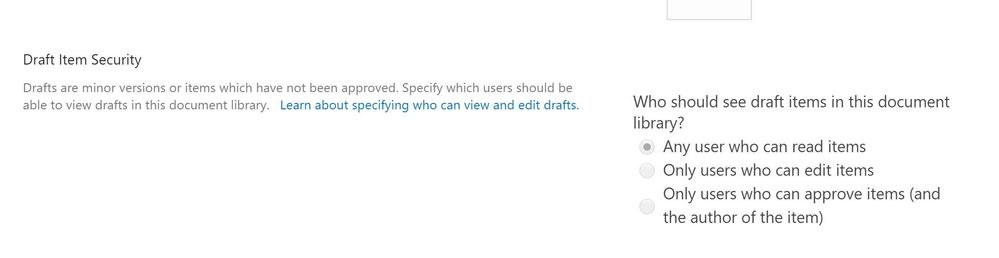 - Changed the "Draft Item security settings" in the Versioning settings of the List/Library