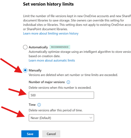 Change the SharePoint Online version limit on the Organization level