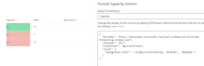 Then add the json format logic and use your own color codes from here:https://htmlcolorcodes.com/