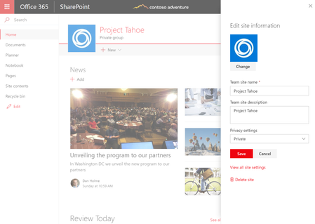 Coming soon - New capabilities from Site information panel (Change site icon and delete site)
