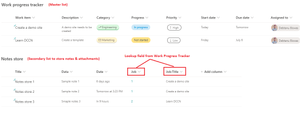 I have two seperate list. First one created from the template "Work Progress Tracker". We need to store multiple notes & attachments with submission dates and the name of the users who posted them. A...