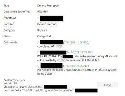Here is also a screenshot of an item not appearing on this list that was completed at 7/14/2021.