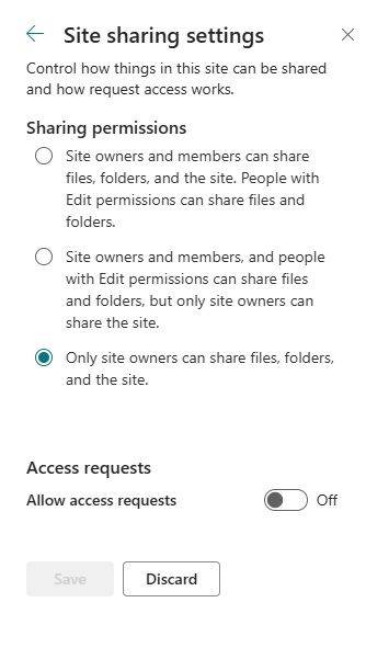Is it possible to completely disable sharing of files and folders in SharePoint? I am aware of the setting that will limit sharing feature to owners only (screenshot below). But our requirement is to...