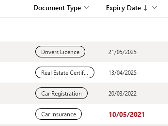 If I use my code and change that number to represent 6 months in milliseconds (15778800000), it will change my expiry date column to make anything that expires within the next 6 months orange and bold.