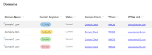 { "$schema":"https://developer.microsoft.com/json-schemas/sp/v2/column-formatting.schema.json", "elmType":"div", "style":{ "font-size":"18pt" }, "attributes":{ "iconName":"MoreVertical" }, "customCardProps":{ "formatter":{ "elmType":"div", "children":[ { "elmType":"div", "children":[ { "elmType":"div", "style":{ "padding":"5px 25px 5px 5px" }, "children":[ { "elmType":"div", "children":[ { "elmType":"div", "style":{ "font-size":"18px", "font-weight":"550", "text-align":"center", "margin-bottom":"10px" }, "txtContent":"Actions" } ] }, { "elmType":"div", "children":[ { "elmType":"span", "style":{ "font-size":"16px", "font-weight":"600", "padding-left":"5px" }, "attributes":{ "iconName":"CheckList" } }, { "elmType":"a", "style":{ "padding-left":"9px", "border":"none", "background-color":"transparent", "cursor":"pointer", "text-decoration":"none" }, "attributes":{ "target":"_blank", "href":"='https://www.mxtoolbox.com/domain/' + [$Title]", "title":"='Open domain check for ' + [$Title] + ' in a new window.'" }, "txtContent":"Domain Check" } ] }, { "elmType":"div", "style":{ "font-size":"10px", "font-weight":"600", "text-align":"center", "margin":"4px", "padding":"5px" }, "txtContent":"" }, { "elmType":"div", "children":[ { "elmType":"span", "style":{ "font-size":"16px", "font-weight":"600", "padding-left":"5px" }, "attributes":{ "iconName":"SearchIssue" } }, { "elmType":"a", "style":{ "padding-left":"9px", "border":"none", "background-color":"transparent", "cursor":"pointer", "text-decoration":"none" }, "attributes":{ "target":"_blank", "href":"='https://who.is/whois/' + [$Title]", "title":"='Open who is check for ' + [$Title] + ' in a new window.'" }, "txtContent":"Who Is Check" } ] }, { "elmType":"div", "style":{ "font-size":"10px", "font-weight":"600", "text-align":"center", "margin":"4px", "padding":"5px" }, "txtContent":"" }, { "elmType":"div", "children":[ { "elmType":"span", "style":{ "font-size":"16px", "font-weight":"600", "padding-left":"5px" }, "attributes":{ "iconName":"Link" } }, { "elmType":"a", "style":{ "padding-left":"9px", "border":"none", "background-color":"transparent", "cursor":"pointer", "text-decoration":"none" }, "attributes":{ "target":"_blank", "href":"='https://www.' + [$Title]", "title":"='Open https://www.' + [$Title] + ' in a new window.'" }, "txtContent":"='www.' + [$Title]" } ] }, { "elmType":"div", "style":{ "font-size":"10px", "font-weight":"600", "text-align":"center", "margin":"4px", "padding":"5px" }, "txtContent":"" }, { "elmType":"div", "children":[ { "elmType":"span", "style":{ "font-size":"16px", "font-weight":"600", "padding-left":"5px" }, "attributes":{ "iconName":"Link" } }, { "elmType":"a", "style":{ "padding-left":"9px", "border":"none", "background-color":"transparent", "cursor":"pointer", "text-decoration":"none" }, "attributes":{ "target":"_blank", "href":"='https://' + [$Title]", "title":"='Open https://' + [$Title] + ' in a new window.'" }, "txtContent":"[$Title]" } ] }, { "elmType":"div", "style":{ "font-size":"10px", "font-weight":"600", "text-align":"center", "margin":"4px", "padding":"5px" }, "txtContent":"" } ] } ] } ] }, "openOnEvent":"hover", "directionalHint":"bottomCenter", "isBeakVisible":true } }Click Save.