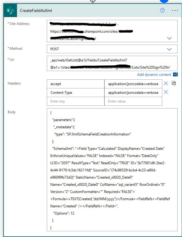 SharePoint HTTP Request REST API in PowerAutomate: with SchemaXMl parameter