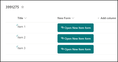 { "$schema": "https://developer.microsoft.com/json-schemas/sp/v2/column-formatting.schema.json", "elmType": "button", "style": { "border-radius": "5px", "margin": "5px 0px", "padding": "0px", "border": "none" }, "attributes": { "class": "ms-bgColor-themePrimary" }, "children": [ { "elmType": "a", "style": { "text-decoration": "none", "padding": "12px 0px", "width": "100%" }, "attributes": { "href": "= @currentWeb + '/Lists/MyList3991275/NewForm.aspx?ID=' + [$ID]", "target": "_blank", "class": "ms-fontColor-white ms-fontSize-m" }, "children": [ { "elmType": "span", "style": { "display": "inline-block", "padding": "0 4px" }, "attributes": { "iconName": "Link" } }, { "elmType": "span", "txtContent": "Open New Item form" } ] } ] }Output: